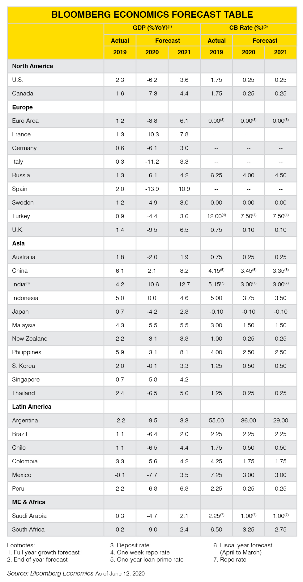 - Whilst the global economy is currently in recession the question everyone is looking to answer is how quickly the recovery will be. Hopes for a V-shaped recovery appear dashed with the second acceleration of COVID-19, so 2020 GDP change will be a deep contraction with strong headline growth numbers in 2021 that may fall short of returning to 2019 GDP.