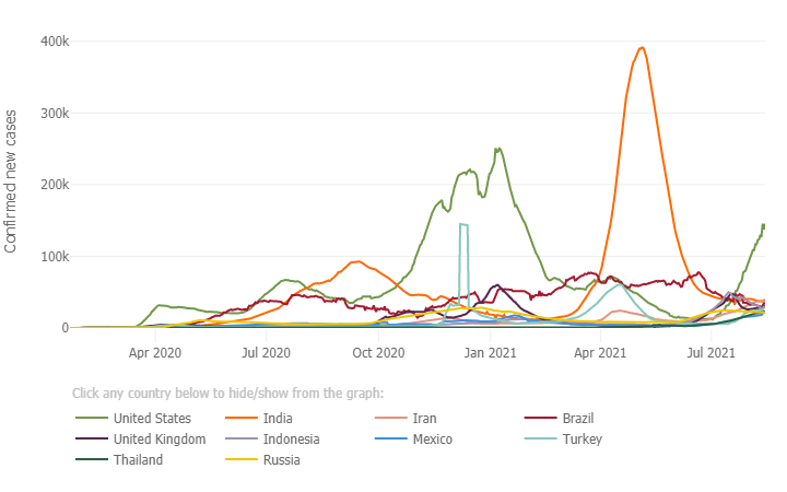 - UK have reduced their restrictions which may add risks towards greater transmission and concerns of a vaccine-defiant variant as herd immunity is still some way off.