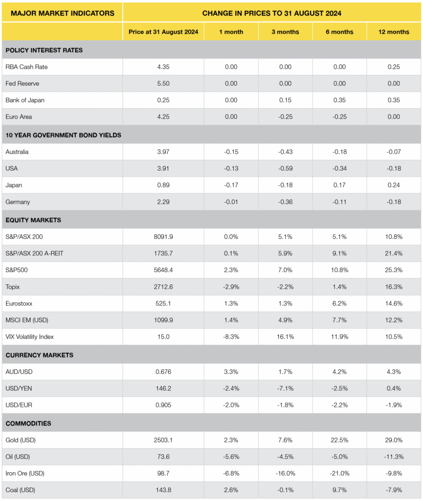 Selected Market Returns in AUD – 12 Months to 31 August 2024