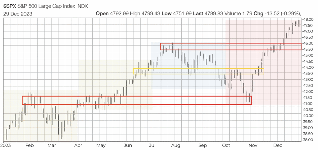 - Equity markets have confidently agreed and ended 2023 on a positive rampage … particularly for growth stocks, that includes the biggest US companies (e.g. Apple, Tesla, et al.).