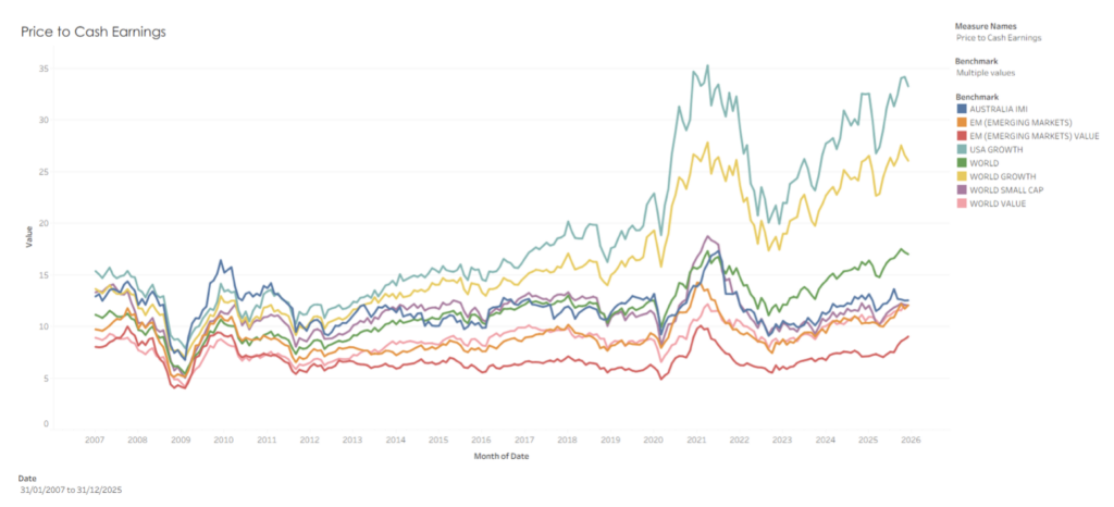 Whilst USA has above-target inflation, continued tariffs, increasing geopolitical tensions, and a Federal Reserve Chair under legal threat, its cash rate is pricing a downward trajectory. Add the continued high USA Equity market valuations, and the USA situation is likely increased volatility across all markets. But the complexity and chaos associated with mixed economic data does not make any outcomes obvious or guaranteed in 2026.