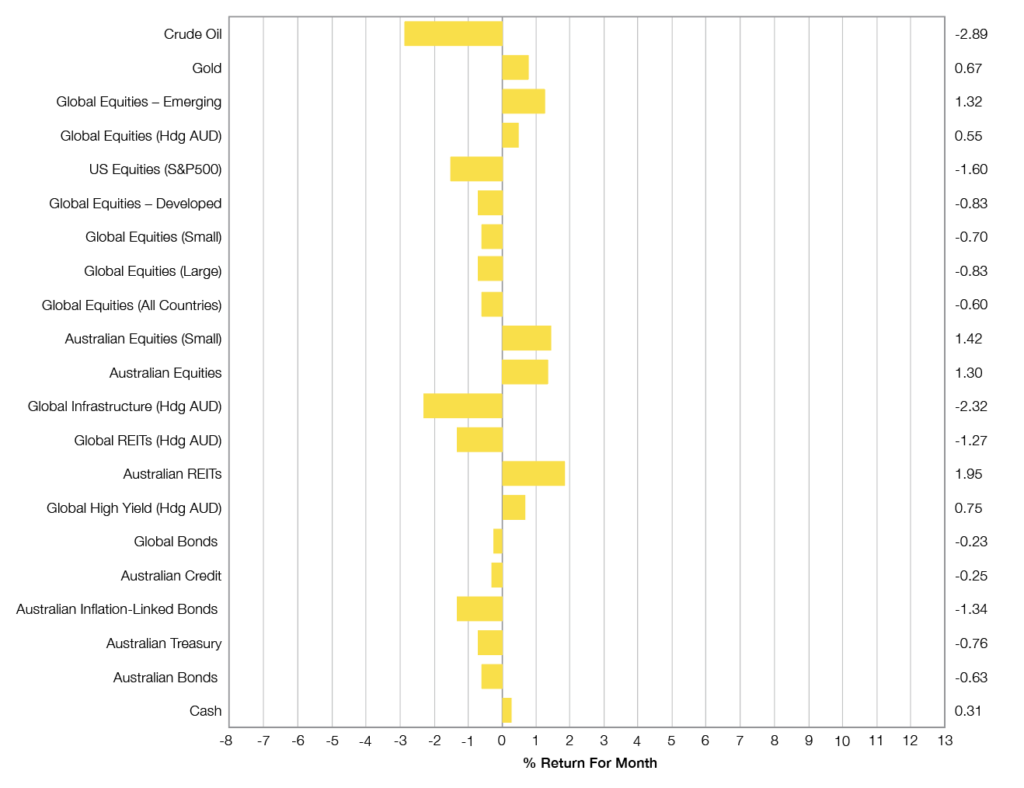 Amongst local and global bond markets, yields generally increased in December meaning bond returns were negative. The higher yields are also likely contributing factors towards negative Global REITs and Global Infrastructure returns. In recent years, these global real assets have taken on investment behaviour similar to leveraged duration, meaning they were often strongly positive with declining bond yields and vice versa.