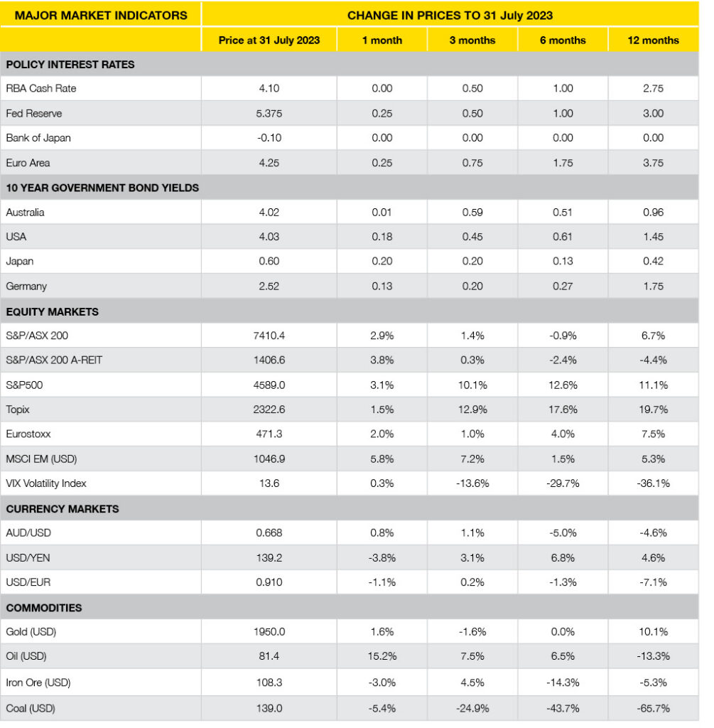 - USA inflation is now at 3%, unemployment somewhat steady and very low at 3.5%, and the June GDP increased quarter on quarter by a strong 2.4%. So the US economy continues to deny many leading economists suggesting there will be no recession. That said, this strength will provide the Federal Reserve impetus to further increase interest rates, and they increased another 25bps in July, to ensure the downward trend of inflation continues. Once again, this begs the question, will they go too far? Rates are currently at 5.25% to 5.5% and well above the 3% recent inflation so will it lead to contraction?
