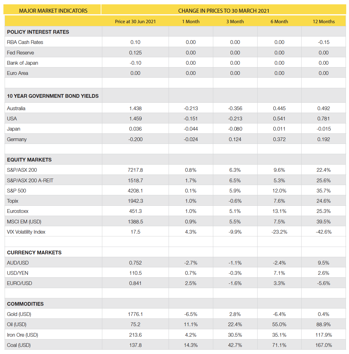 - Strong vaccinations in across Europe and the USA has shown their economies starting to open up a little more. Unfortunately, Australia has become the global pandemic laggard as vaccination messages have been mixed and take-up has been much slower than hoped as the federal government has struggled to gain sufficient supply from Pfizer and others.