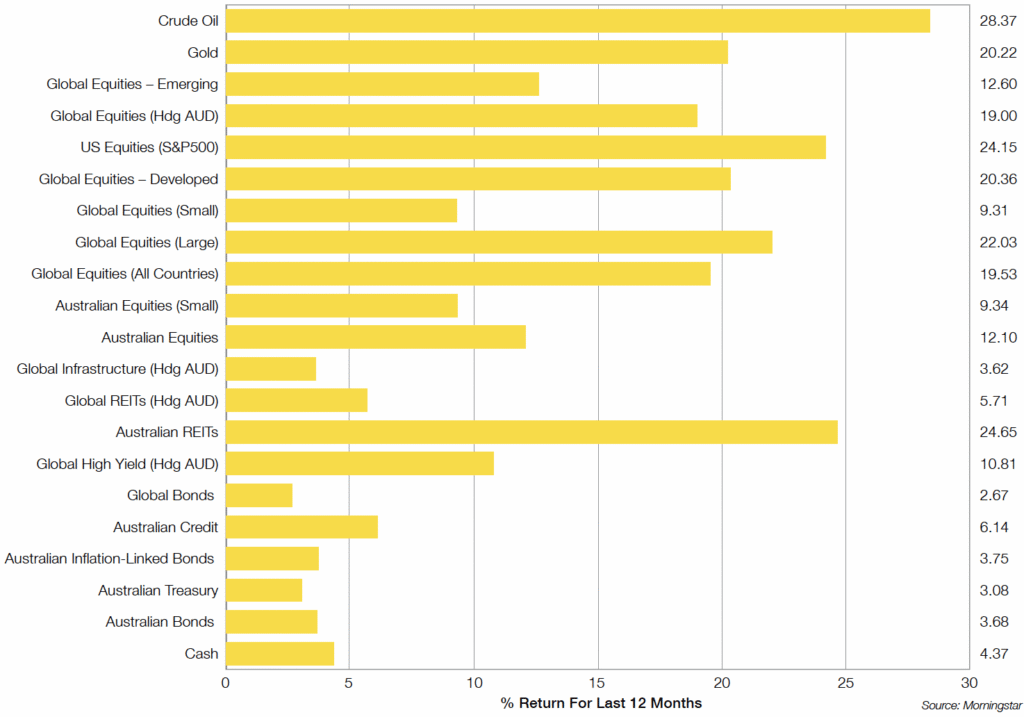 Most Risky Assets produced strong returns over the 2024 Financial Year. The only exceptions being Global REITs and Global Infrastructure who were largely affected by the higher for longer theme of inflation, cash rates and bond yields.