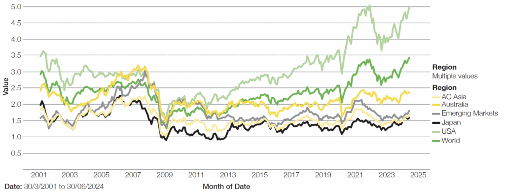 - The paradox of markets and economies continues as high US sharemarket valuations persist in the face of high interest rates and slowing economies. The current sharemarket momentum may continue over the short term but longer-term growth at above-average levels appears increasingly unlikely.