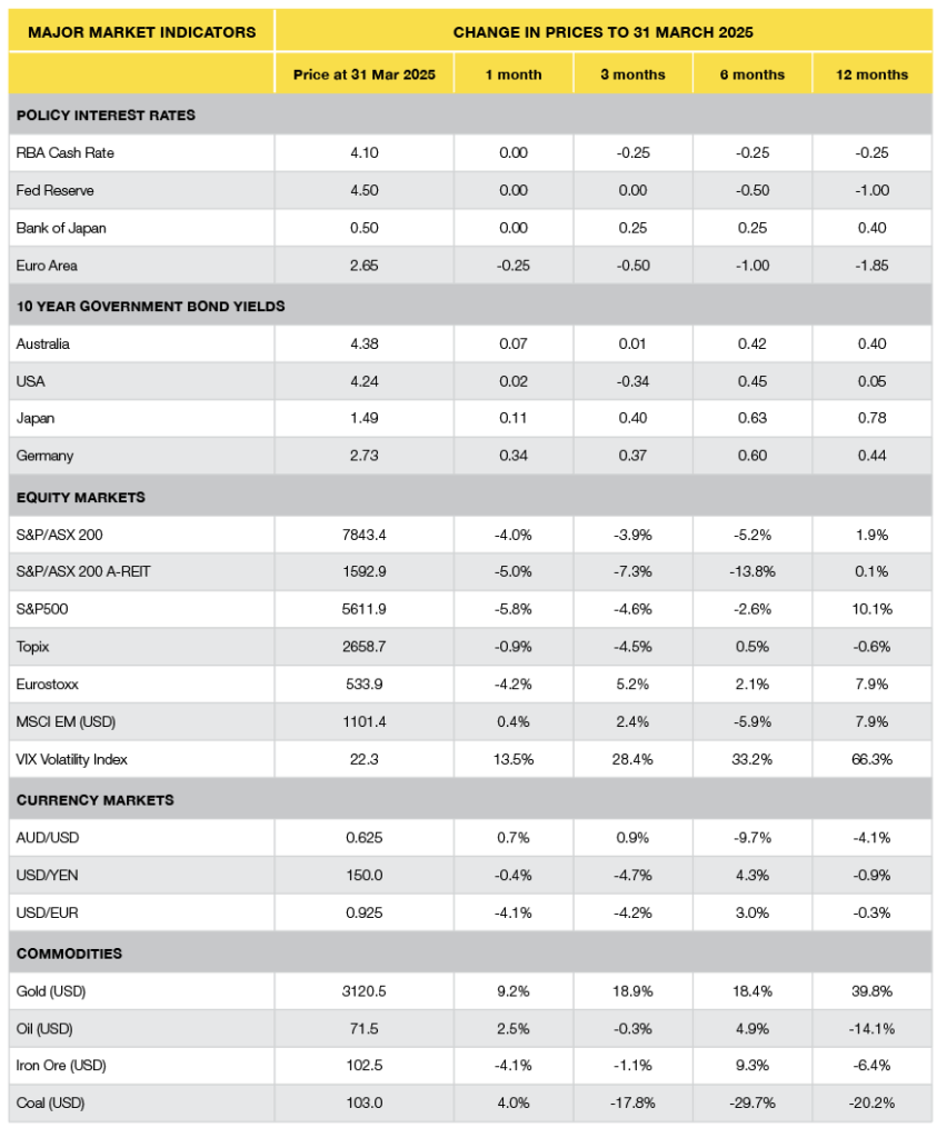 - The tariffs have also provided a change in the outlook for cash rates. Current markets suggest Australian cash rates may be down to around 2.9% by the end of 2025.