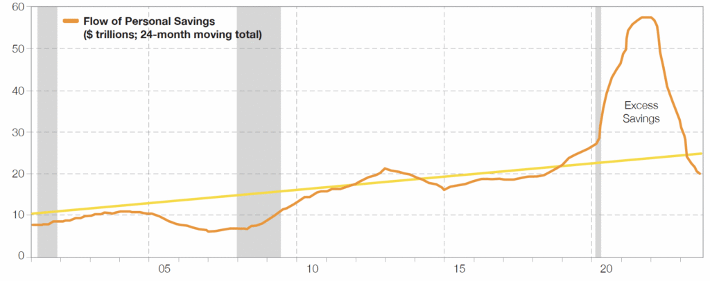 - In terms of economic data, the US jobs market continues to appear strong, inflation crept up a little to 3.7% from 3.2%, and there was no update on economic growth across the major economies. That said, economic leading indicators such as confidence, bank lending, credit card usage, and debt servicing strain to name a few, show recessionary signs for the USA.