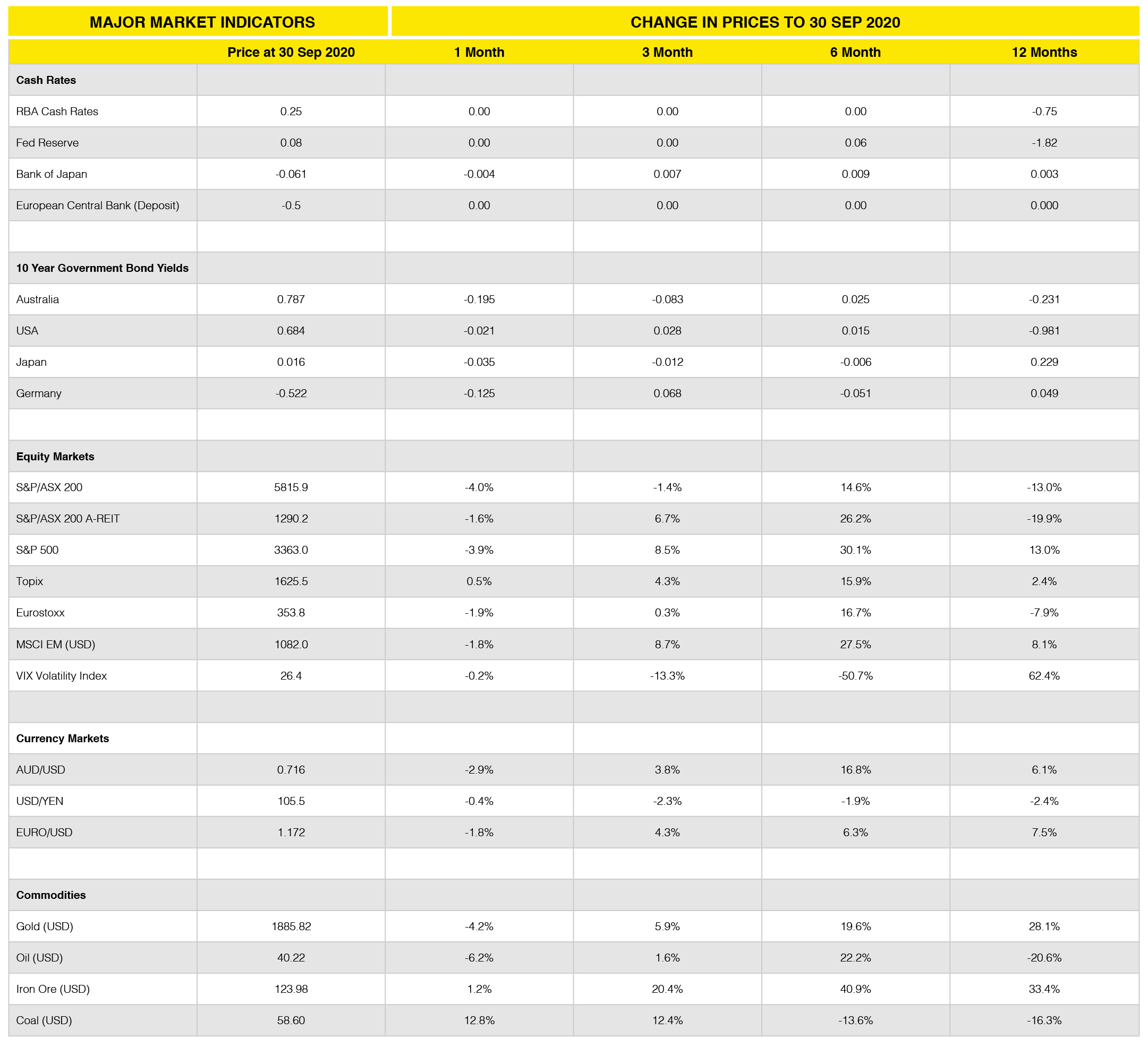 Asset Class Returns (to 30 September 2020)