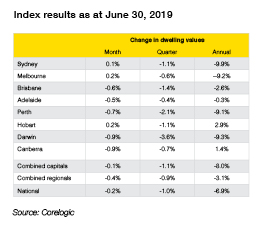 - The primary driver of the weak results has been the decline in housing markets across Australia which have resulted in loss of confidence, perceived wealth, and therefore reduced spending. Refer table below for housing price reductions to end of June 2019