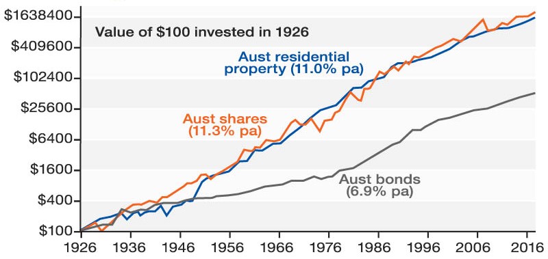 As sayings go, ‘don’t put all your eggs in one basket’ is an oldie but a goodie. Shares, property, bonds and cash all have good years and bad. Even though shares and property provide the best growth in the long-term, prices can fall or move sideways for years at a time and you don’t want to be forced to sell in a downturn because you need the cash.